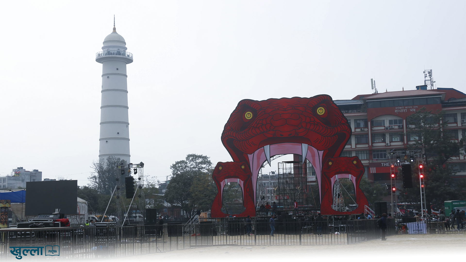 टुडिखेलमा बनाइने स्टलका लागि टेन्ट बनाउने काम भइसकेको छ । डुक (गरुड) वर्षको बिदाई र डुल (सर्प) वर्षको स्वागत स्वरुप यो वर्ष मनाउन लागिएको ल्होछारको लागि सर्पको टाउकोको ठुलो आकृति मञ्चसँगै राखिएको छ । मञ्चको निर्माण सम्पन्न भने भोलि मात्र हुनेछ ।