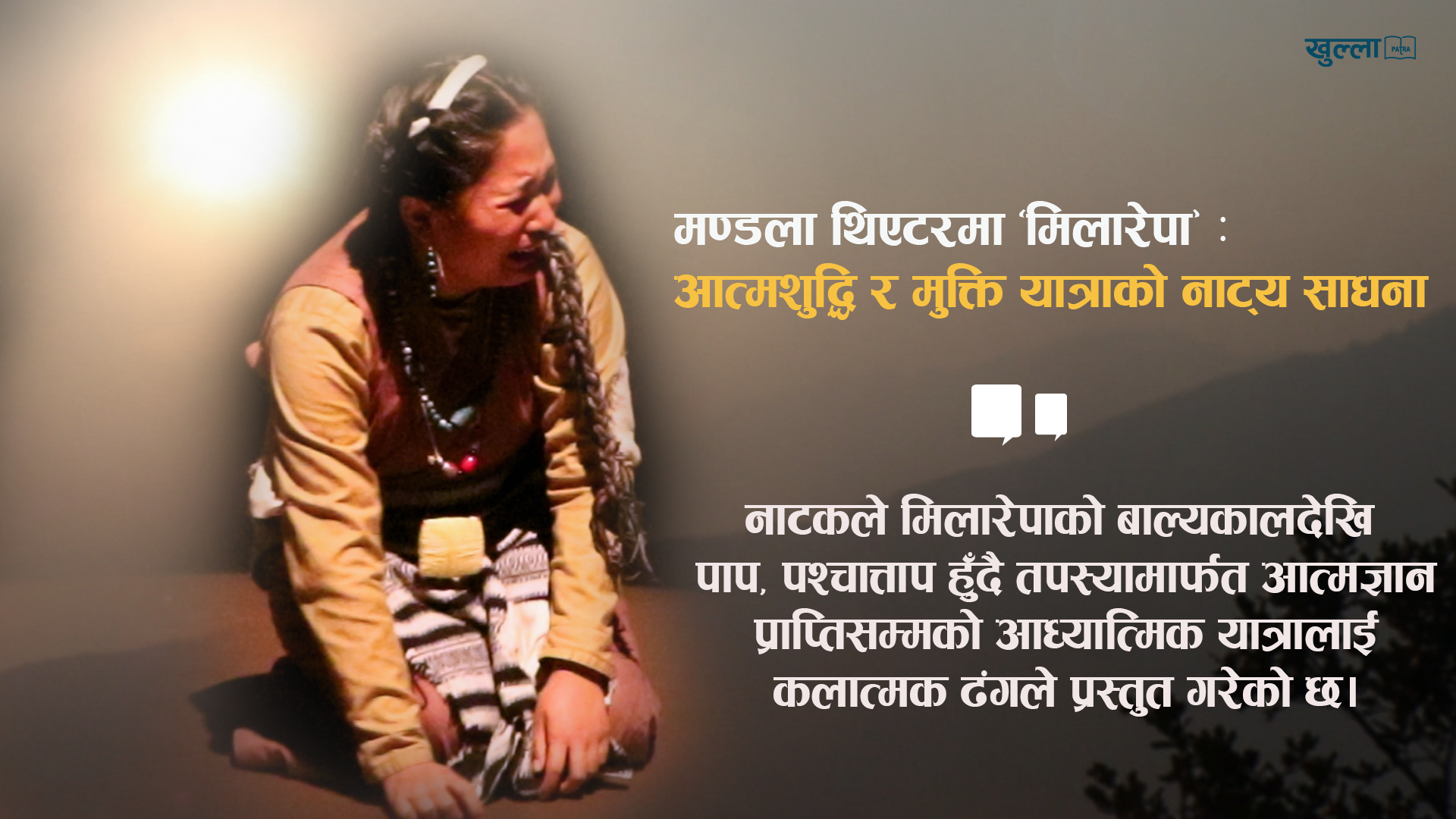 मण्डला थिएटरमा प्रस्तुत ‘मिलारेपा’ नाटक केवल धार्मिक कथा होइन – यो मानव आत्माको शुद्धी, क्षमा र पुनर्जागरणको कलात्मक साधना हो। नेपाली रंगमञ्चमा ध्यान, दर्शन र मानवताको गहिरो संगम बोकेको प्रस्तुति बनेको छ।